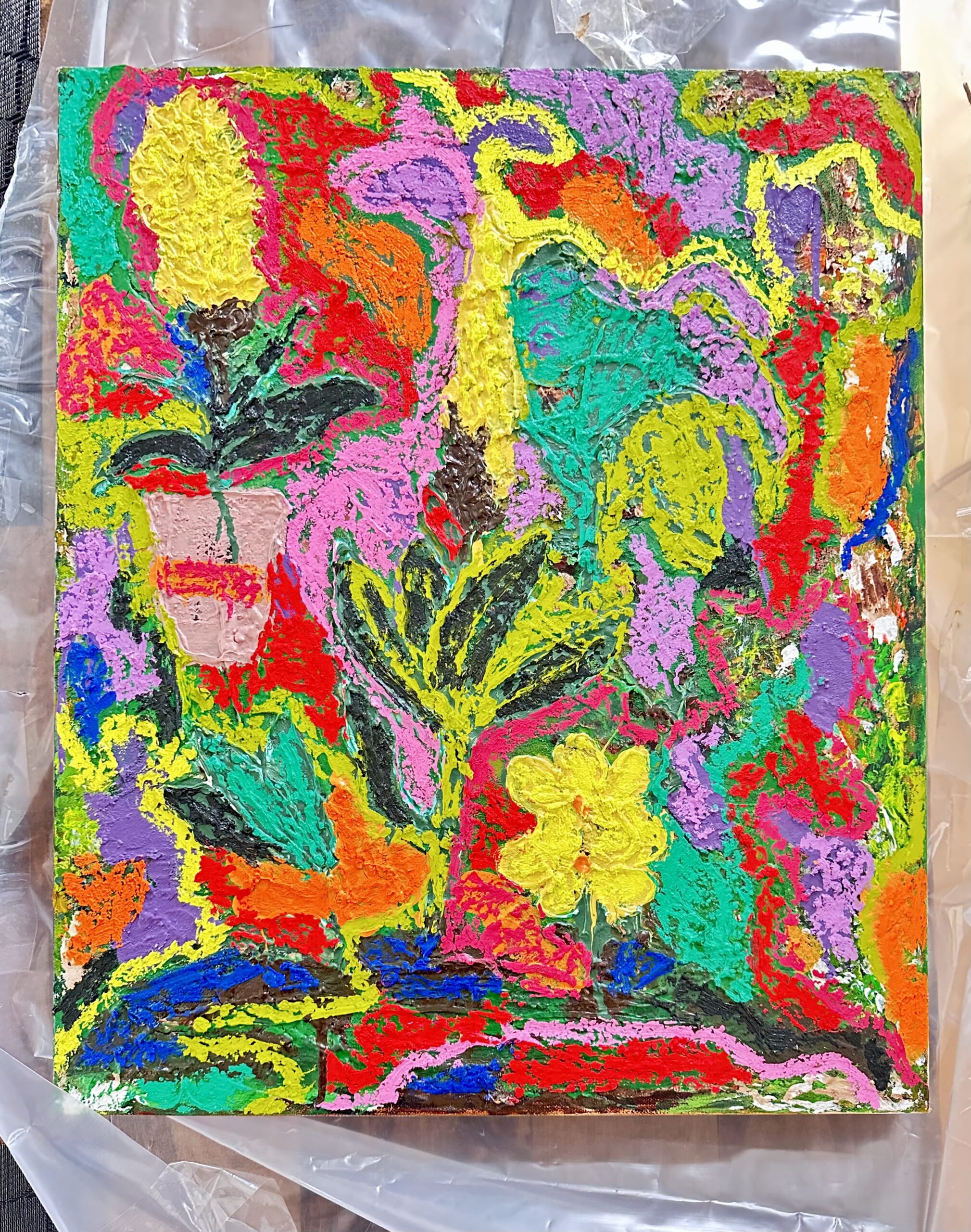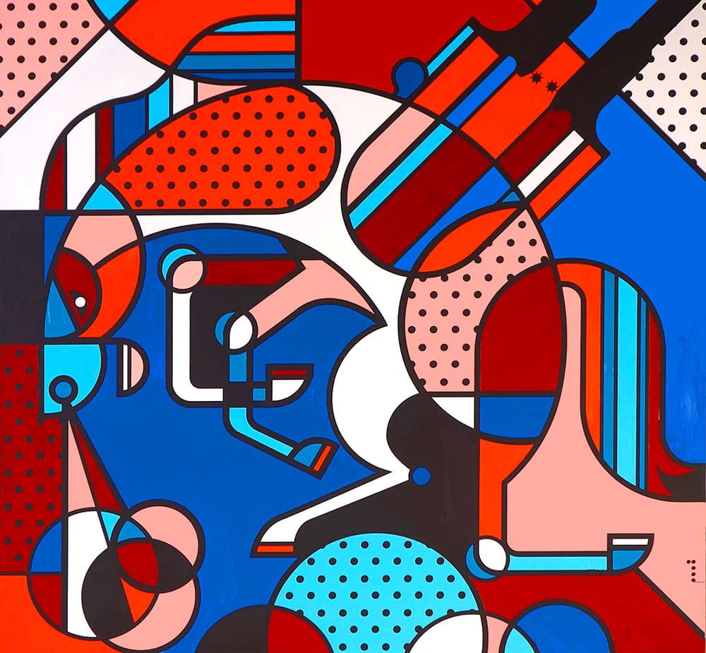 On Tuesday evening, I unwrapped a new painting that we recently purchased from Shaheen Gallery’s exhibition of new work by Antwoine Washington. Maybe they have been groomed or maybe their excitement is genuine, but my sons love it when new art arrives. They have opinions on where it should go and why; and, it is the most fun to hear all about what they are thinking. After we settled on the fact that the painting really aligns most closely with my younger son and that it should hang in his room, we took it in there to figure out which wall. There is a lot of bright art in his room and this particular painting is also bright. I held it up and my older son declared, “That does not excite my eyes.” He is 7 and he was exactly right. When I asked him why it does not excite his eyes, giddy with glee that he had articulated his opinion so clearly and concisely. He observed that the colors in the new painting are too similar to the other work on the wall and so it all just gets lost.