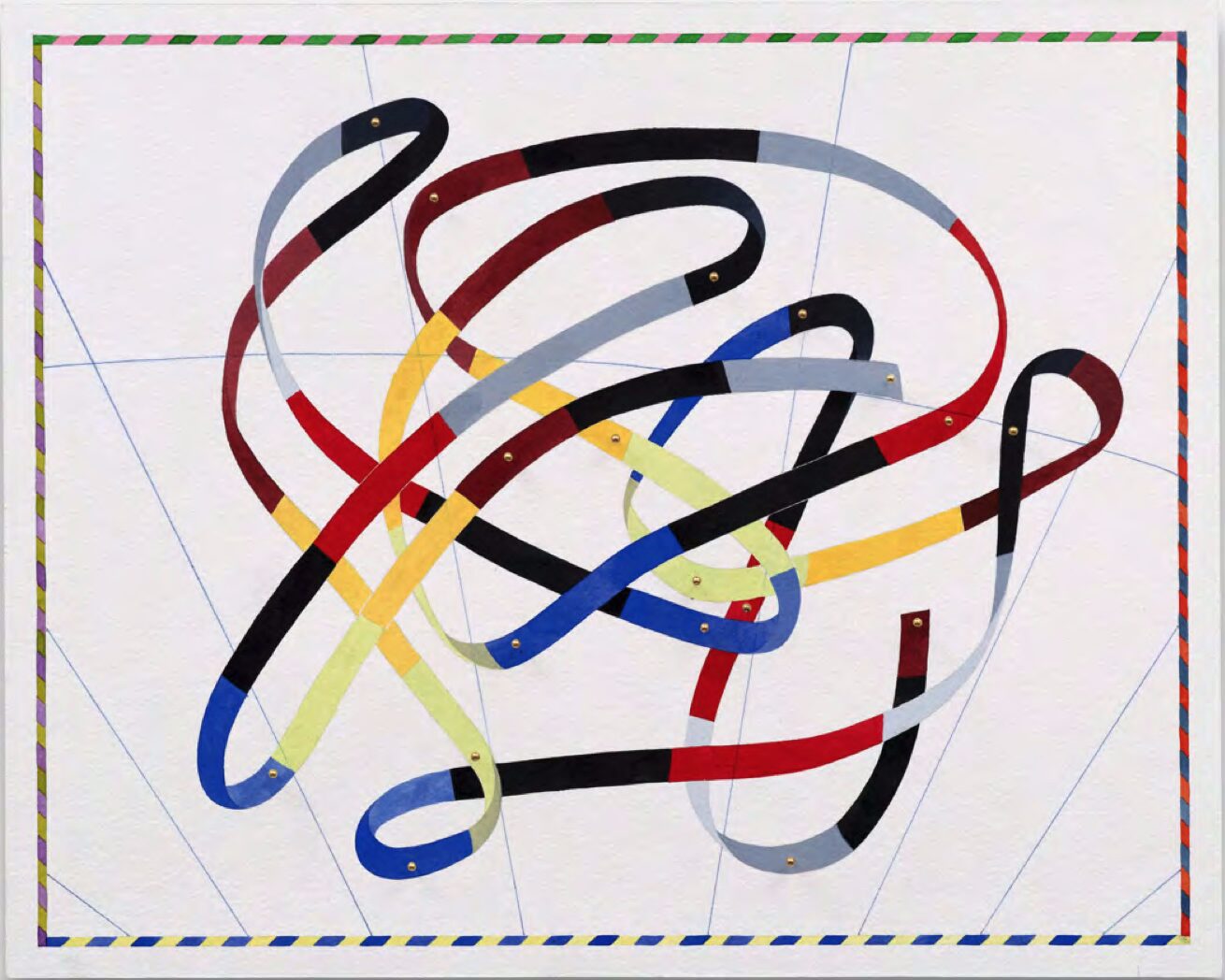 But they also remind me that life ain’t a straight line. On of the critical aspects of this work is the fact that the ribbons map the path of the stars from furthest to closest to Earth and the pushpins demarcate the location of the stars in the constellation. As we can see, even though the shortest distance between two points is a straight line, life isn’t about taking the shortcuts. It’s about meandering this way and that on the journey toward ultimate fulfillment. It’s okay to explore over here and over there on your path from A to Z. At times, everyone living under the same sky feels confused, jumbled, and misaligned. All we have to do is find the next star and take the next step.