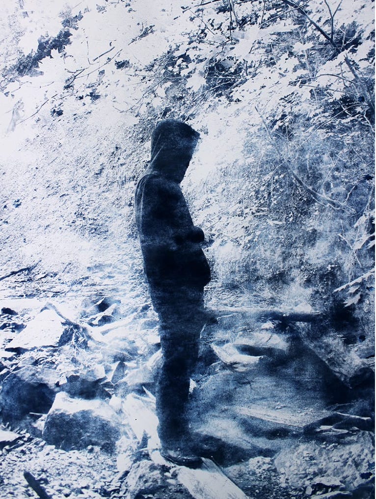 TR Ericsson, Born To Lose Live To Win, 2018, Prussian Blue powdered pigment on paper, 50 x 38 in